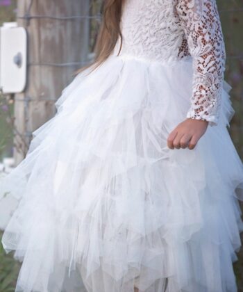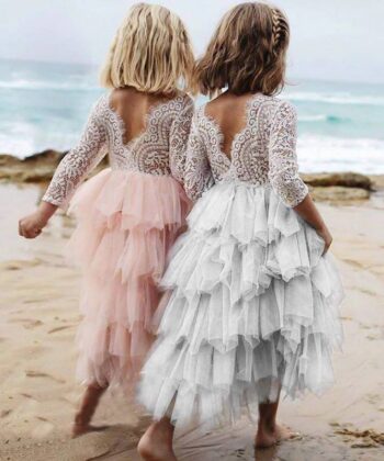 Autumn and winter explosions hollow children's skirt lace long-sleeved girls white princess dress irregular dress