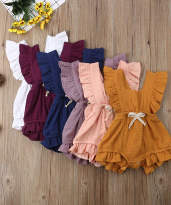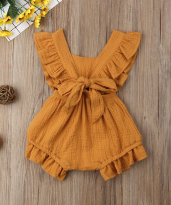 Lotus leaf lace sleeve bow baby dress