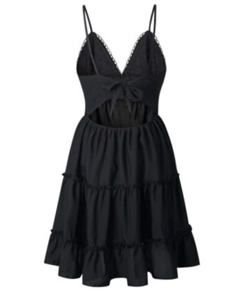 Simple and Concise Back Butterflyknot StrapSheer White Lace and Frilled Waist DressSexy V-neck and Alluering Backless Design;Suitble for casual,leisure,formal,etc;1pcs only,other accessories not include;Material: Polyester + LaceColor: Whitelack