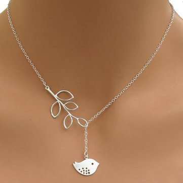 Gold Silver Leaves Bird Cross Infinity Pendant Necklace For Women
