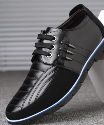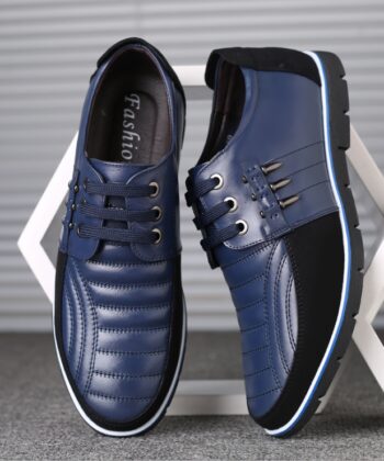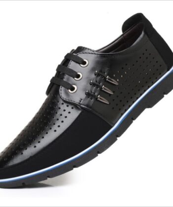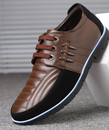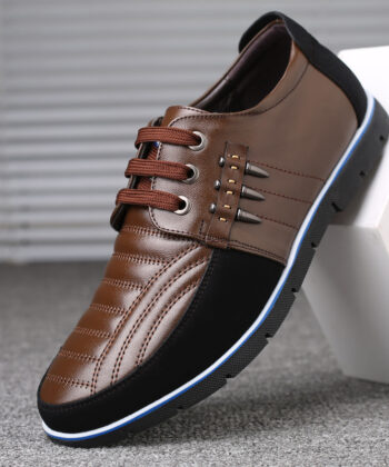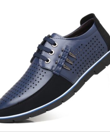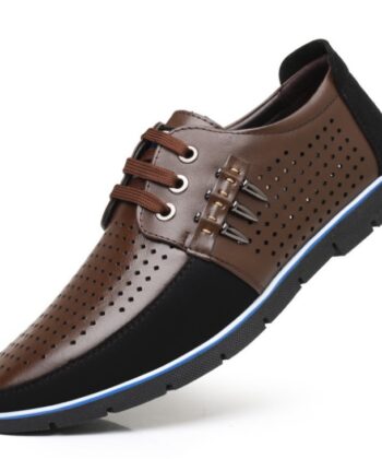 Men’s leather shoes Korean casual leather shoes first layer cowhide three-color lace round head hollow dress youth shoes cross-border