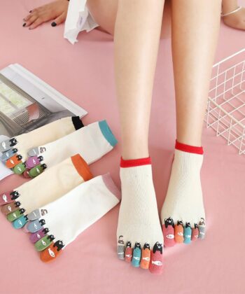 Women Men Cute Print Happy Socks Colorful Toe Funny Five Finger Harajuku Socks Cotton Funny Socks